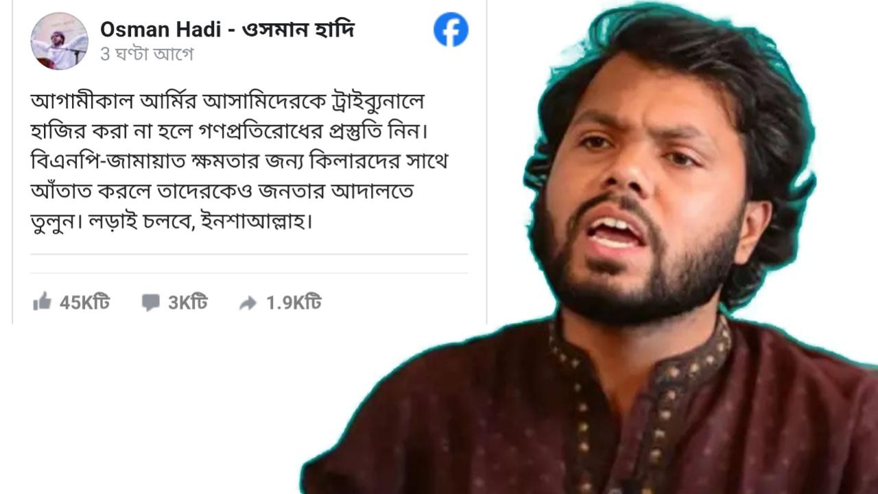 আর্মির আসামি হাজির না হলে গণপ্রতিরোধের ডাক শরিফ ওসমান হাদির