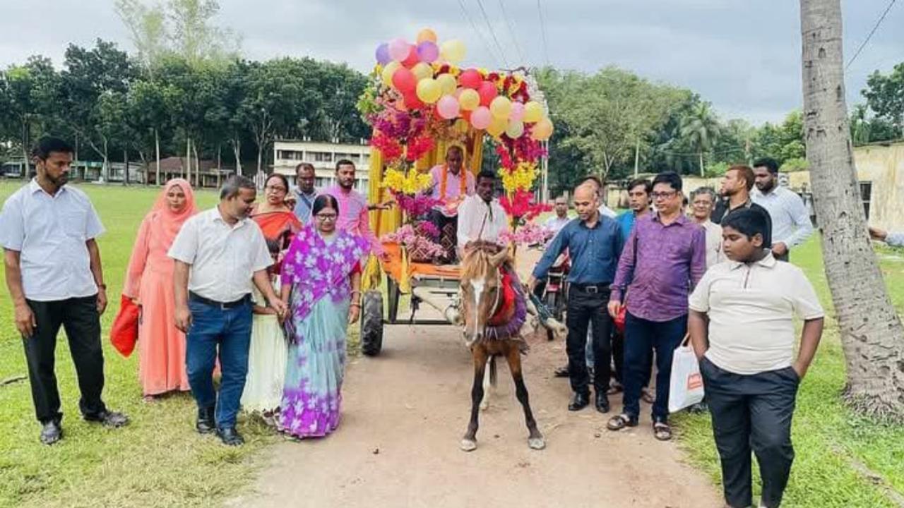 ঘোড়ার গাড়িতে রাজকীয় বিদায় পেলেন শিক্ষক দিলীপ কুমার সরকার