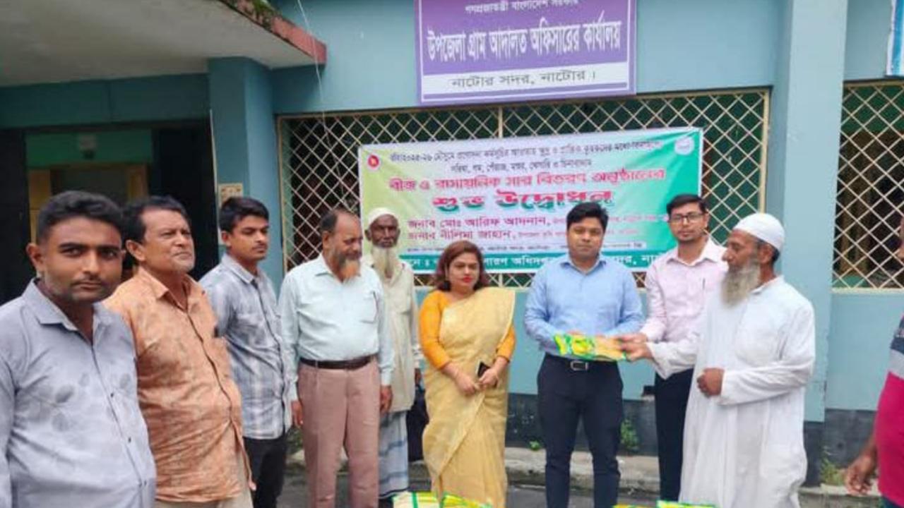 নাটোরে ক্ষুদ্র ও প্রান্তিক কৃষকদের মাঝে বিনামূল্যে বীজ ও সার বিতরণ