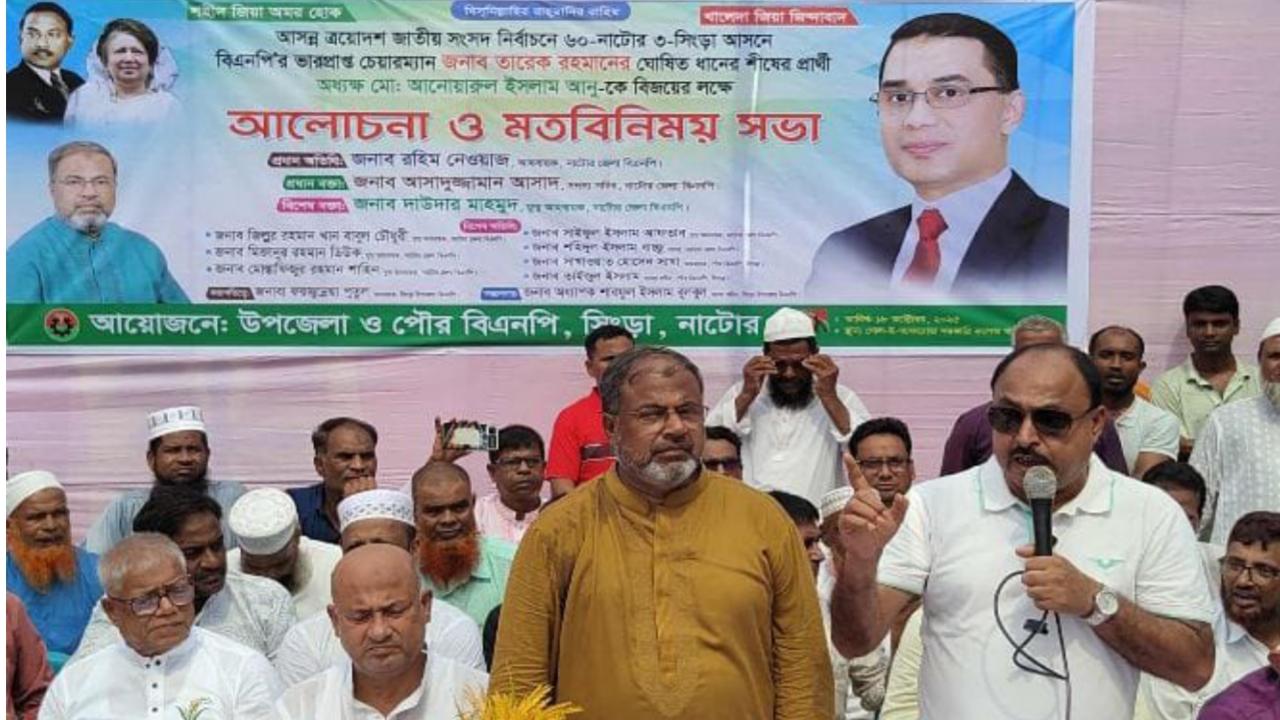 আসন্ন ত্রয়োদশ জাতীয় সংসদ নির্বাচনকে সামনে রেখে নাটোর-৩ (সিংড়া) আসনে বিএনপি’র ভারপ্রাপ্ত চেয়ারম্যান তারেক রহমান ঘোষিত ধানের শীষের প্রার্থী অধ্যক্ষ